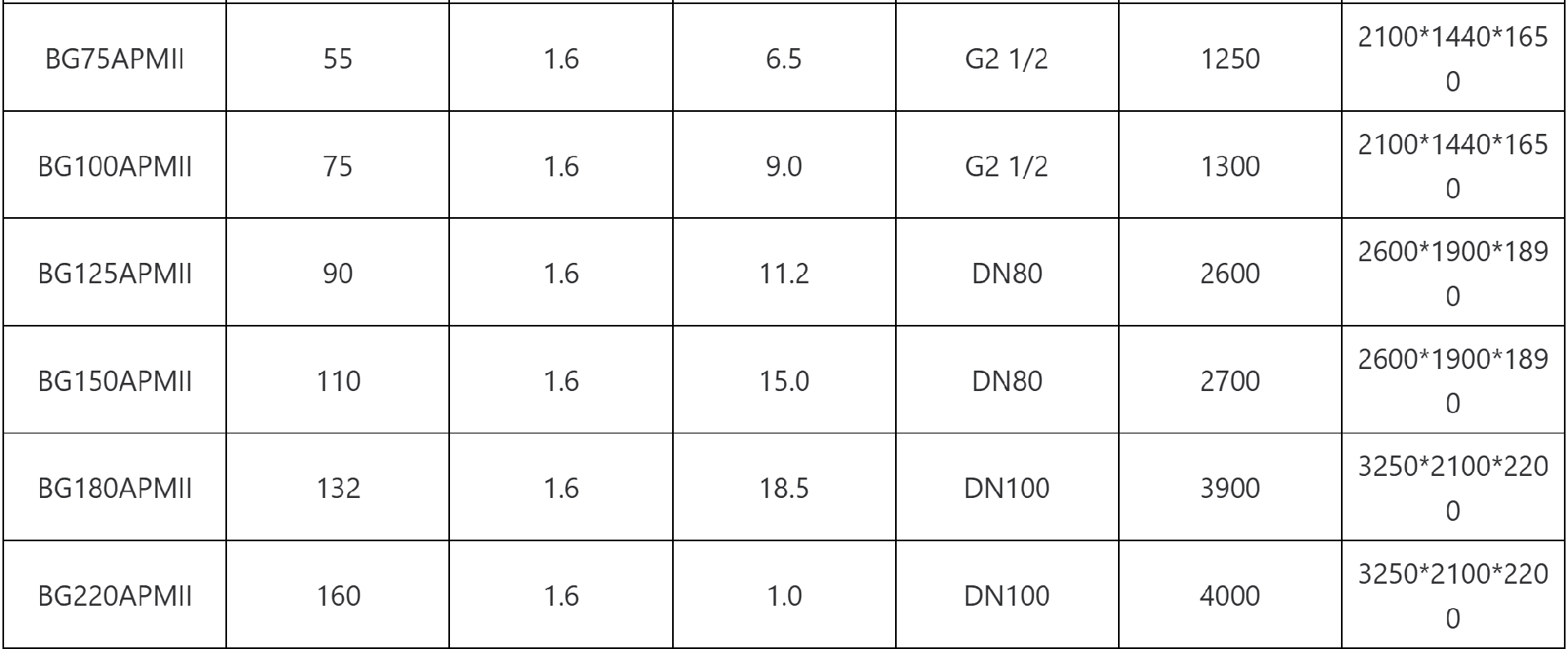 注:型号带TD为一体式机型,不带II为单级压缩机型,带II为双级压缩机型。